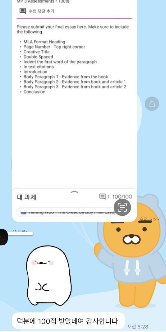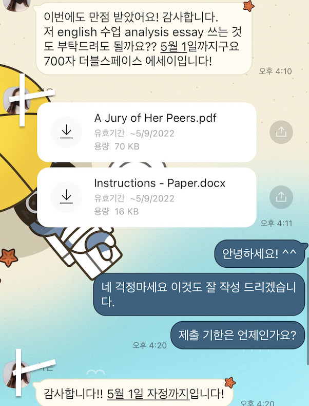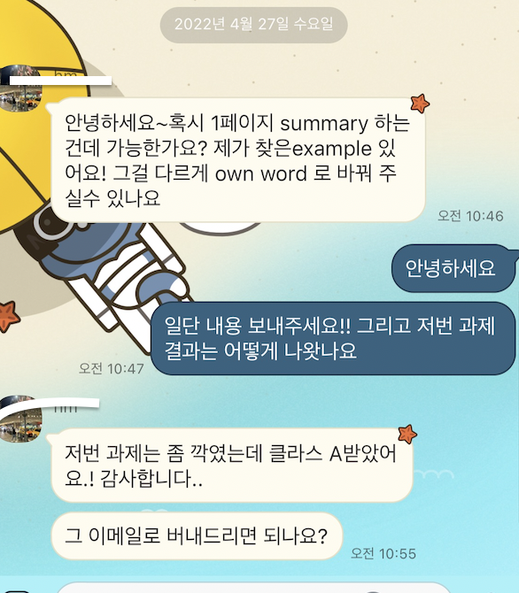 문의는 카카오톡으로 가능합니다 : 아이디 : Complete Essay