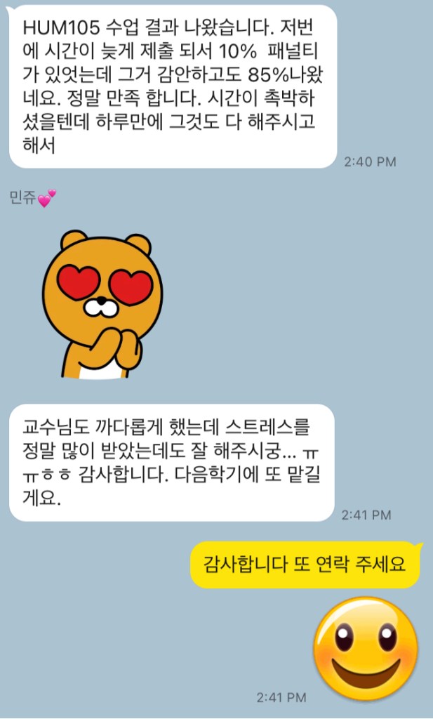 안녕하세요 여러분만나서 반갑습니다.동장군이 활개를 치고 있습니다.수강 신청 계획은 잘 하고 계신가요? 좋은 학점을 받고 싶으신가요쏟아지는 과제에 고민이 많으시죠.영어 사고 방식은 한국어랑 다릅니다.미국에 오래있어도 글쓰기란 참 쉽지 않죠.암기과목에 비하면 글쓰기가 힘든 건 사실이죠.네이버 블로그에서 찾아보셨나요?