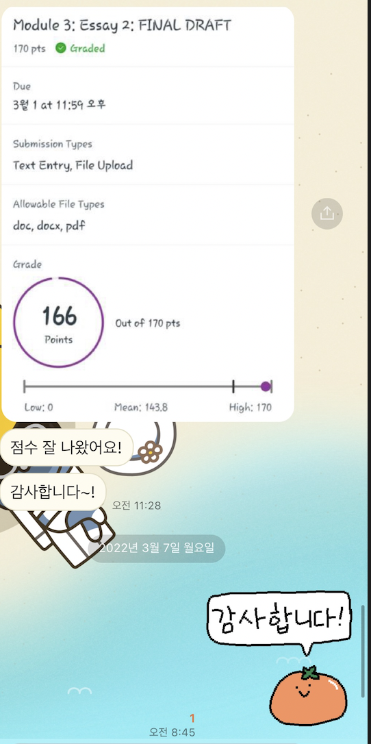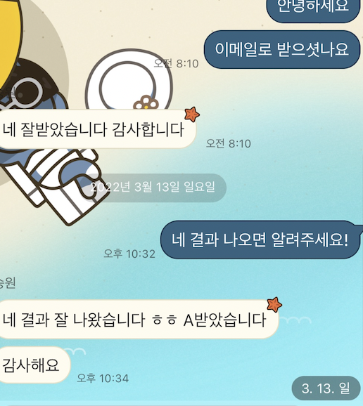 안녕하세요 회원님좋은 아침이에요. 곧 추석이 돌아오고 있습니다. 노력의 결실을 맺을 졸업 준비는 잘 하고 계신가요?지난 학기보다 좋은 성적 위해 노력하시죠.